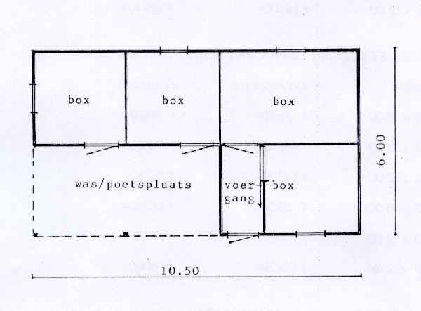 Vier boxen: 3 stuks met afmeting 3.00 x 3.00 meter en 1 met afmeting 3.00
